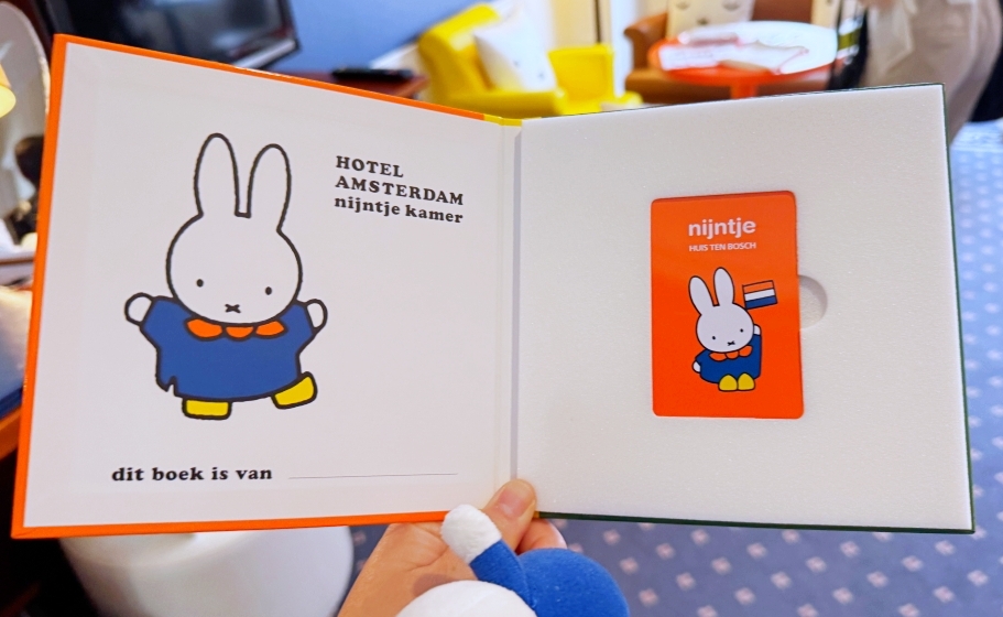 豪斯登堡共有5間官方飯店,而Miffy主題客房就位於其中的「阿姆斯特丹飯店」。這間飯店不僅是豪斯登堡園區內唯一的飯店,所在位置也和新園區「Miffy夢幻小鎮」同樣位於阿姆斯特丹城裡。