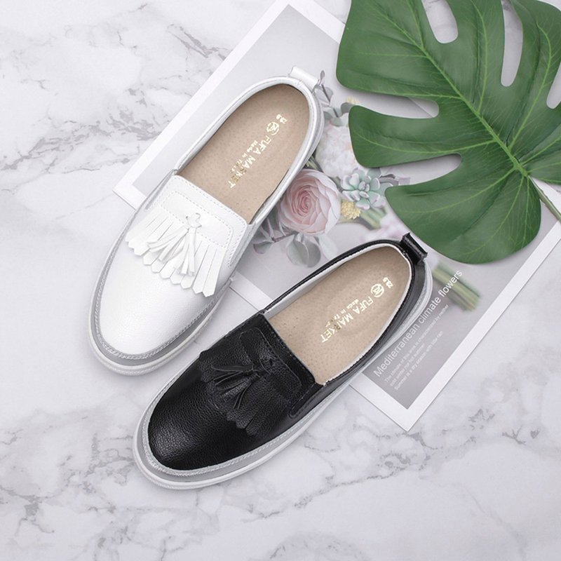 不穿襪子鞋推薦 7:富發牌 真皮流蘇綴飾懶人鞋