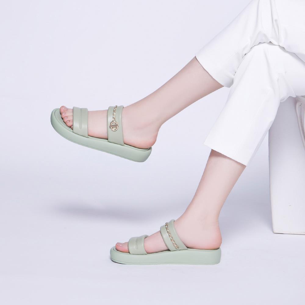 這雙絕對是夏日清爽系代表,湖水綠配色光看就有降溫感,很適合夏天穿搭!寬版一字帶設計走得穩又好看,內部使用防水透氣材質,不只透氣不悶腳,就算素足穿也不怕流汗卡腳。