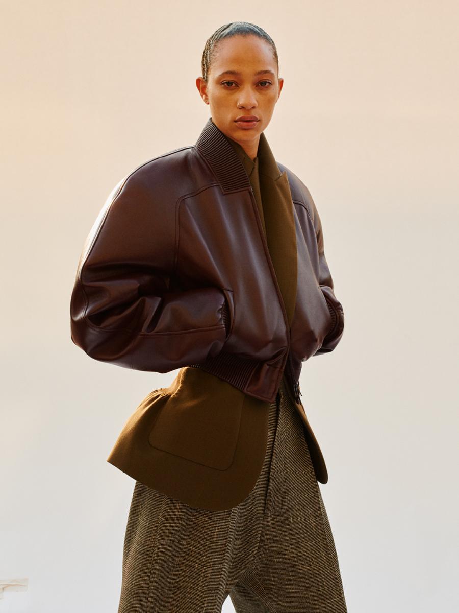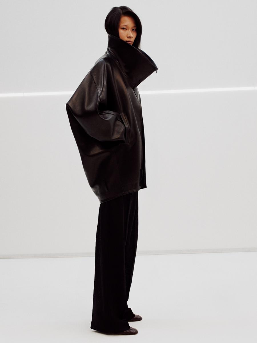 近日,她正式發佈個人品牌第四系列的創作,延續過去的幾個季度命名,她以「Collection D (D系列)」為主題,設計上她依然沒有把流行放在眼裡,立領、挺拔的肩線,賦予女性強而有力的線條,像絲瓜領的皮衣,領片立體流暢的像是一體成形的雕塑品,別人眼裡可愛的剪羊毛材質的外套,到她手上則變得充滿個性,其中一件腰線收緊的西裝外套,搭配反差的肩寬,為當今許多品牌如出一轍的沙漏剪裁,提供新的參考範本,Oversize 的 T-Shirt 上衣和繡有羽毛的褲子交互搭配,休閒又不失造型,Phoebe Philo 用自己的語言,再一次掀起熱議。