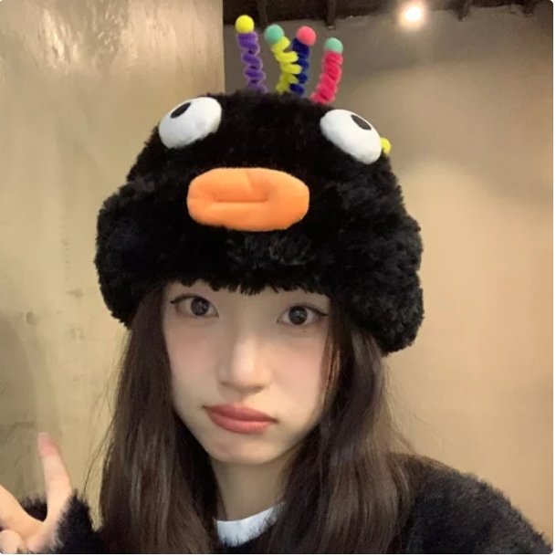 青春就是要可愛又自信!這款帽子超級可愛~~呆呆的眼睛、頭上還冒出幾根意義不明的頭毛(?)像外星人一樣又怪又可愛啦!蘋果編一看到它,就想和朋友一起戴上它,去開心逛街,一起搞怪、哈哈大笑!青春就是要充滿活力、做自己~