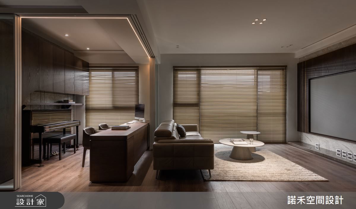 半開放式書房介於開放與獨立之間,既通透又獨立,常見開放式書房有玻璃搭配半高牆、玻璃拉門或折疊門形式,讓書房既保有空間感,又能稍微界定出使用區域,既不影響整體通透性與互動性,又提供一定程度的專注空間,是在小宅中最靈活且實用的選擇之一。