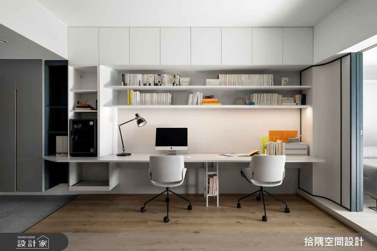 開放式書房常與客廳、餐廳整合,透過半高牆、書桌或沙發作為場域分界的暗示,採用無明確隔間的設計手法,不僅讓公領域的空間感更加寬敞通透,也保有一定的機能性,不過隱私與隔音較差,也相對容易受到客廳雜音干擾,但應對日常辦公、閱讀,或是孩子寫作業綽綽有餘,是小坪數住宅中相當實用的空間配置。
