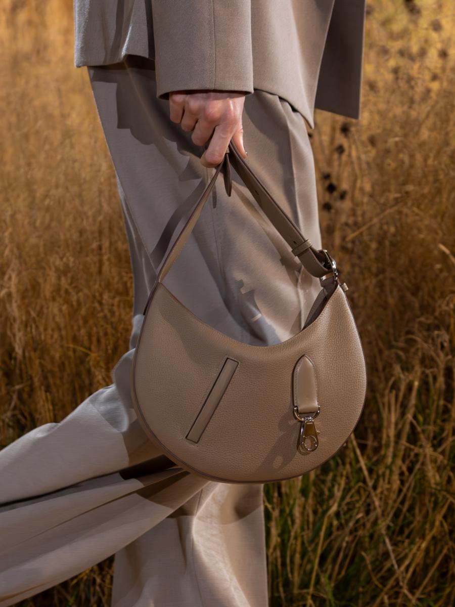 2023 年推出的 P’tit Arçon 是 Hermès Arçon 系列的迷你版本,延續品牌對馬術元素的熱愛,卻以更俐落、現代的方式演繹。整體包身以彎月形曲線打造,宛如馬鞍弧度,搭配寬版肩帶與金屬鉤扣,機能與造型兼具。靈感來自 Martin Margiela 時期的 “Poches en Liberté”(自由口袋)設計語彙,加上前方斜拉鍊口袋與可掛式配件細節,使這款迷你包在輕巧中保有豐富層次與玩味感。無論斜背或肩揹,都彷彿穿梭於城市與馬場之間的自由靈魂。