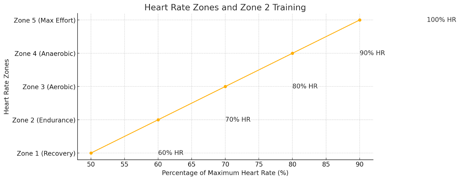 Zone 2 訓練的關鍵在於保持適當的心率區間,以確保運動強度處於最佳的有氧代謝範圍。計算方式如下: