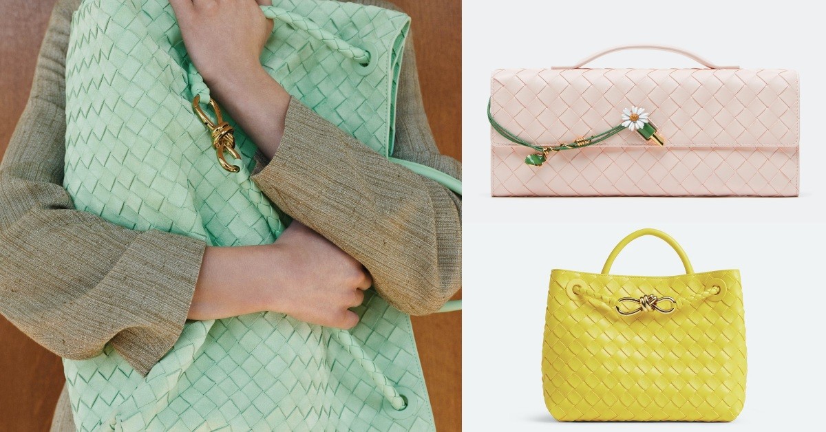 Bottega Veneta包款推薦2:Andiamo糖果粉雛菊裝飾編織手拿包