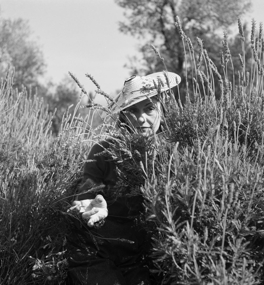 香奈兒女士於 La Pausa 故居的薰衣草花園裡,攝於1938年。
