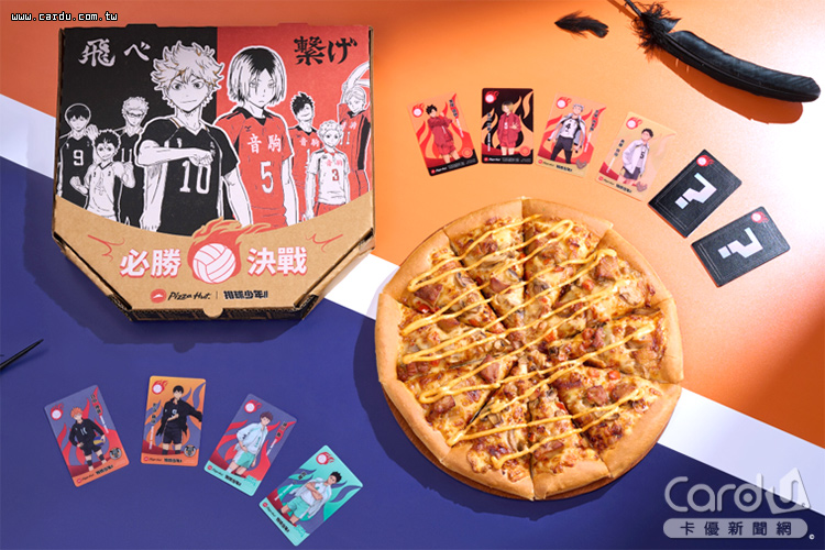 必勝客與熱血動畫「排球少年!!」聯名,集結日向翔陽、影山飛雄……等人氣角色設計10款隨機透卡,9月22日前單點「炙燒明太子嫩雞大比薩」就能獲得1款,或點購個人比薩獨享餐加價49元購入。想要一次蒐集全套,選購「一公尺派對盒」加價399元就能把透卡通通帶回家。比薩外盒則換上「排球少年!!」圖案,讓用餐升級成「動漫收藏盛會」。