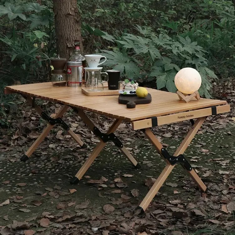 秋季露營必備推薦 6:Fantasy Garden 實木戶外便攜式蛋捲桌