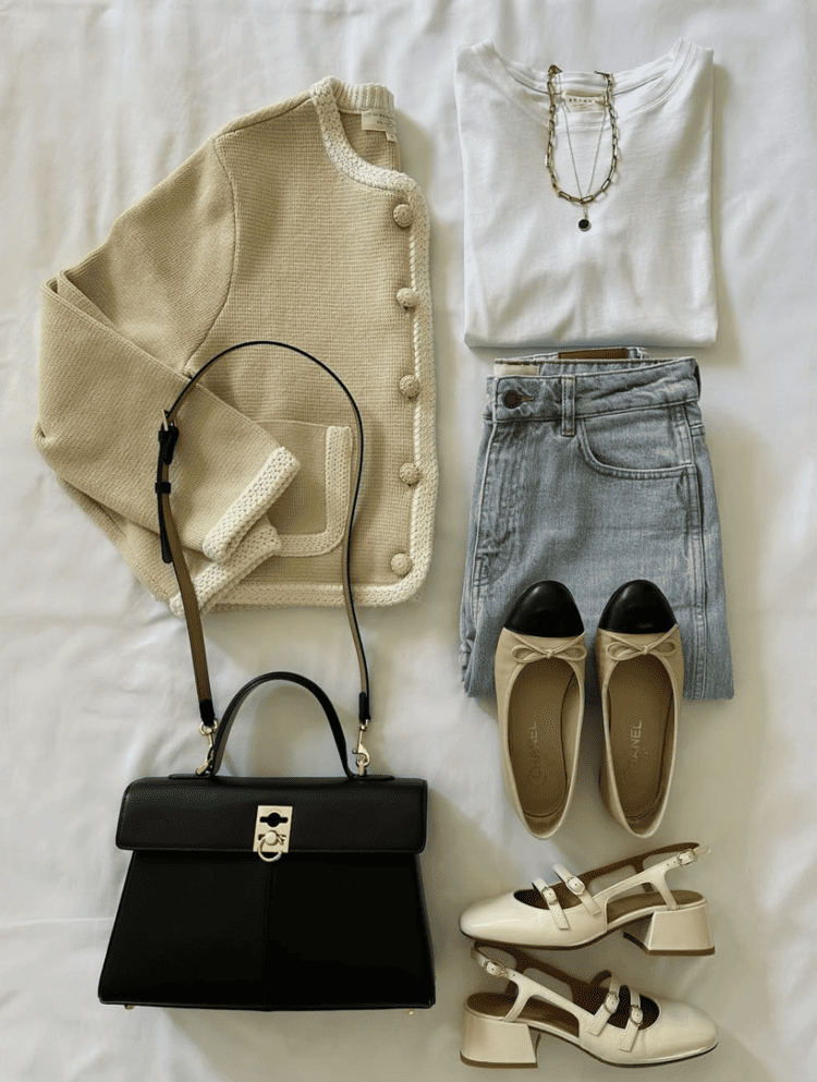 適合上班族、會議日、簡約控。選擇白襯衫、西裝褲或深色直筒褲作為基底,搭配西裝外套或風衣外套,整體乾淨俐落。配件選擇低調皮質小包+樂福鞋,營造「有打理過」的專業感。搭配針織衫或百褶裙,也能多一點柔和感。