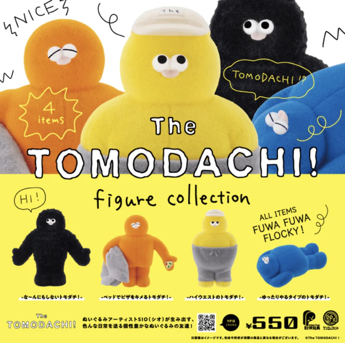 有趣的是,「The TOMODACHI!」這系列玩偶,並沒有一個固定的形象代表,而是有著各式各樣不同表情、不同顏色、不同造型的角色,就像朋友也是有著形形色色、各種不同的存在一樣。而作者SIO也會在每一次的快閃活動中,推出不同造型的TOMODACHI。