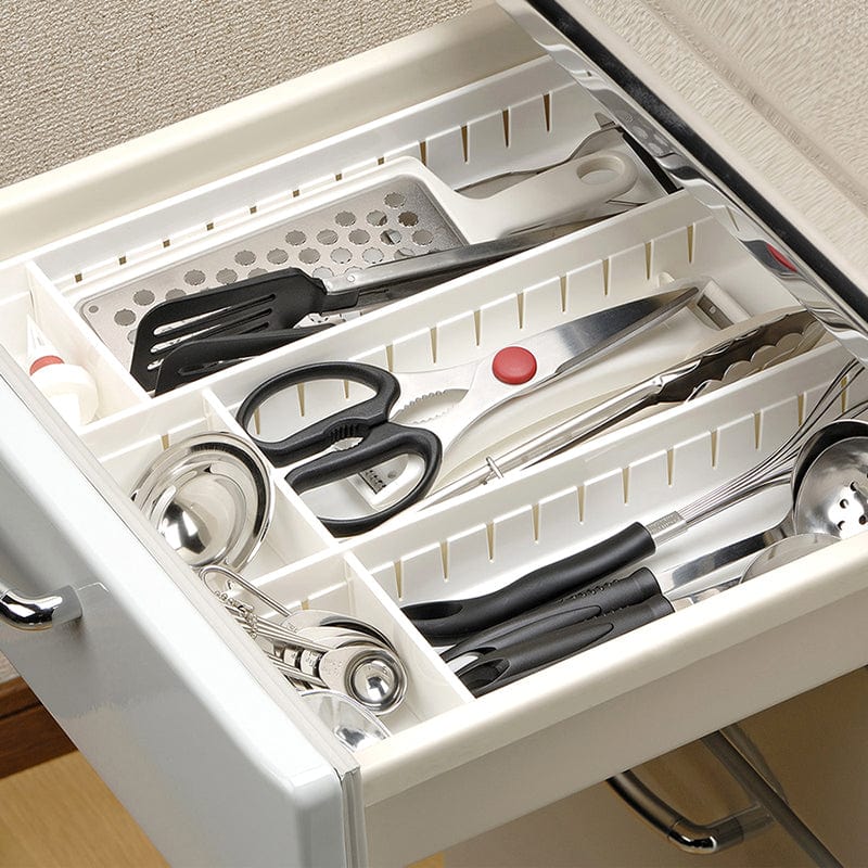 抽屜分隔盒有不同的大小,挑選時主要要看可否有多格層,並且要先量好尺寸,確定符合抽屜的尺寸大小。有些分隔盒甚至可以伸縮,就算之後抽屜大小有變動也不用擔心",是超級實用的生活小物!