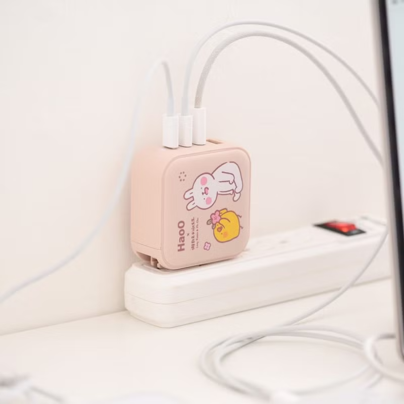 多裝置用戶絕對需要一顆高效能的充電器。這款 HaoO 氮化鎵快充頭不只體積小巧,支援 PD3.0、QC3.0、PPS 等多種快充協議,最高 100W 功率可同時充電四台裝置,還跟「懶散兔與啾先生」聯名,插頭上有超可愛的角色圖案,讓你為 iPhone 17 充電時也能療癒感滿滿!