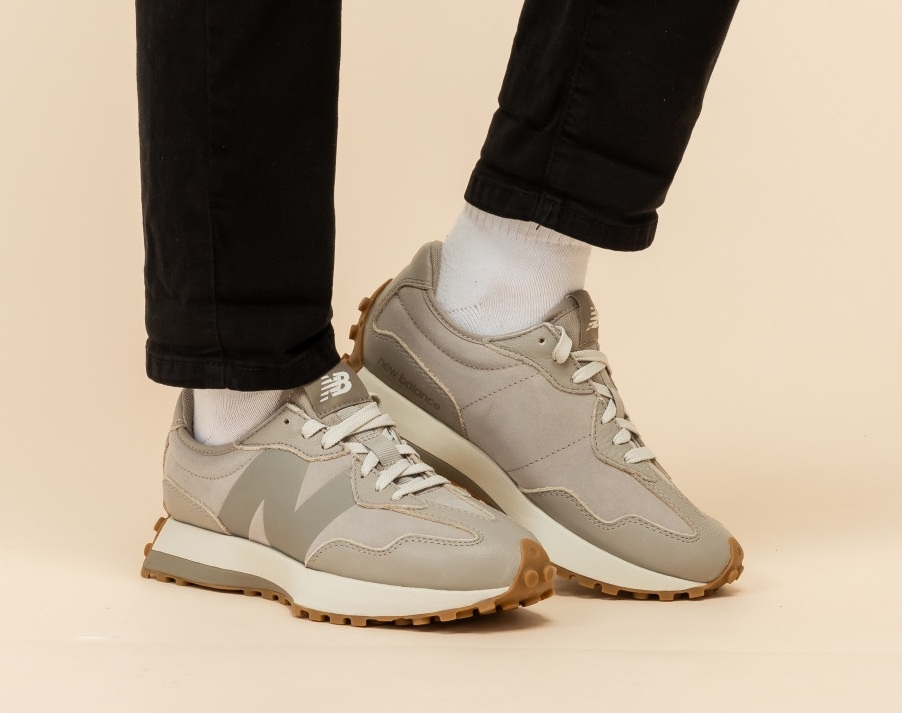 New Balance 327 型以其復古跑鞋輪廓與誇張鞋底設計聞名,軍綠款式加入深軍綠為主色,並用白色或米色細節拼接平衡視覺,鞋型偏長、鞋底有些許厚度,增加視覺比例。適合想要街頭感與復古感融合的人。可搭配軍綠、橄欖綠風衣或外套,下搭黑色直筒牛仔褲或深藍牛仔,內搭打底衫或奶油色毛衣;鞋款軍綠色自然與軍裝、卡其色非常合拍,也能與秋冬針織、毛衣搭配出溫暖感。