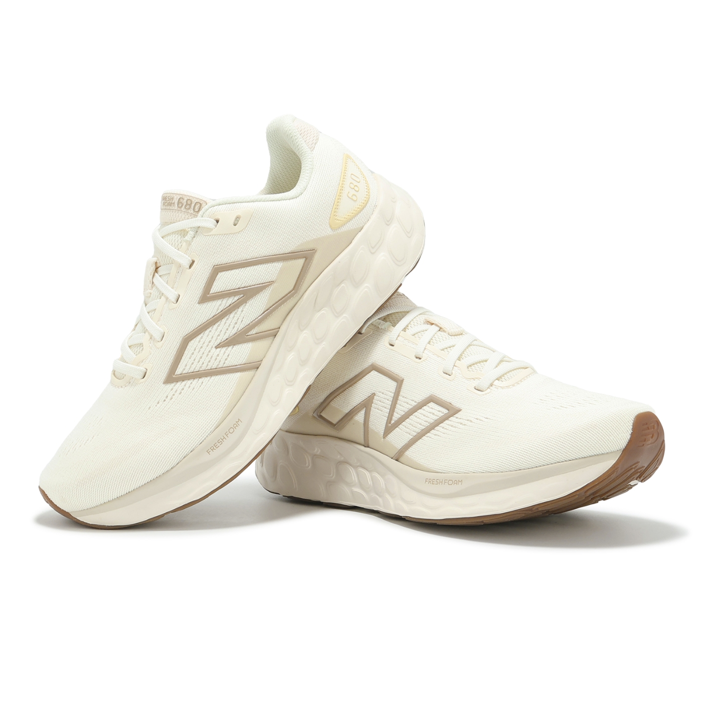 這雙 Fresh Foam 680 V8 主打的是米色、沙色調,鞋底中底採用 New Balance 的 Fresh Foam 緩震科技,穿起來腳感柔軟舒適,非常適合日常長時間行走或站立需求。鞋面以多層次網布與支撐片設計結合,整體輕量。搭配米色鞋款搭淺灰色長褲或淺卡其褲,下半身選柔和色調;上半身搭白色或奶油色衣物,用深棕外套或酒紅披肩作為點綴。這樣可以讓整體造型偏暖色系但不膩。