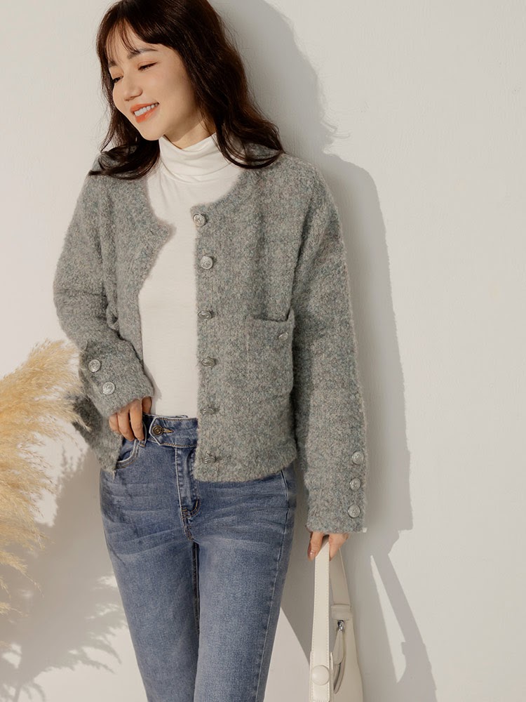 早秋穿搭單品推薦4:花紗針織金屬釦圓領外套