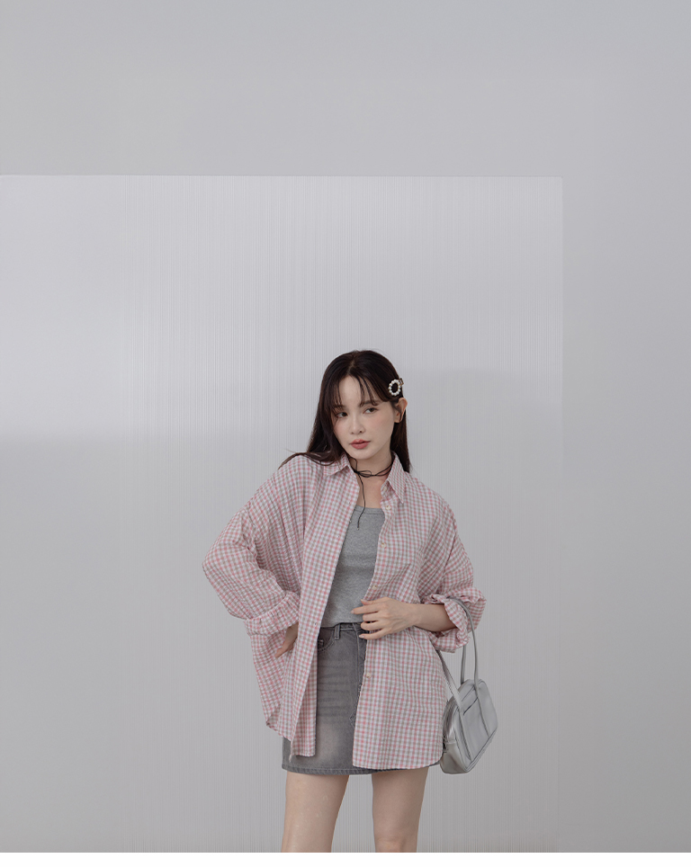 早秋穿搭單品推薦7:撞色細格紋理長袖寬版襯衫