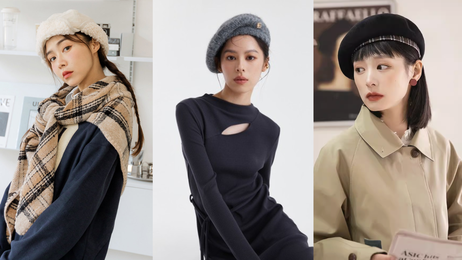 氣溫轉涼冷颼颼,但時尚可不能一起降溫,試試這款毛織格紋圍巾!採用秋冬不敗經典的格紋設計,搭配外套或洋裝都好看,微彈性的材質,親膚保暖,寬大的尺寸設計,讓你可以當圍巾保暖,也能當披肩使用,一秒變身溫柔系女神。這個秋冬別只靠大衣外套撐場面,改用這條格紋圍巾,讓穿搭更有層次感吧!秋冬造型推薦2:復古小香風貝蕾帽