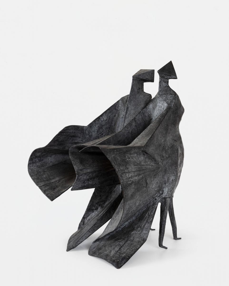 英國戰後雕塑名家查德威克以幾何化量體與「姿態」語彙見長。此件青銅小樣延續其自焊接鋼條與混合材質時期提煉出的動勢:稜角面在空間中形成緊張與平衡,彷彿動態被凝固。帶翼或披袍般的抽象人形,提煉的是身體語言與權力結構;冷冽幾何包裹著人性與儀式感,是他對現代雕塑身體性的標誌性回應。