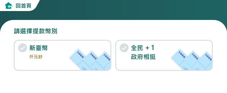 步驟1:插卡 → 選擇「提款」 → 點「全民+1 政府相挺」