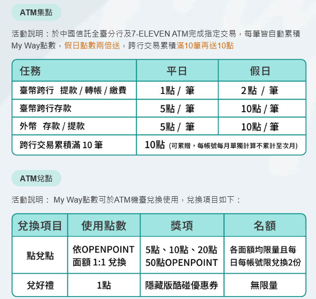 ◆中信數位點(My Way)點很好用-ATM集點、兌點