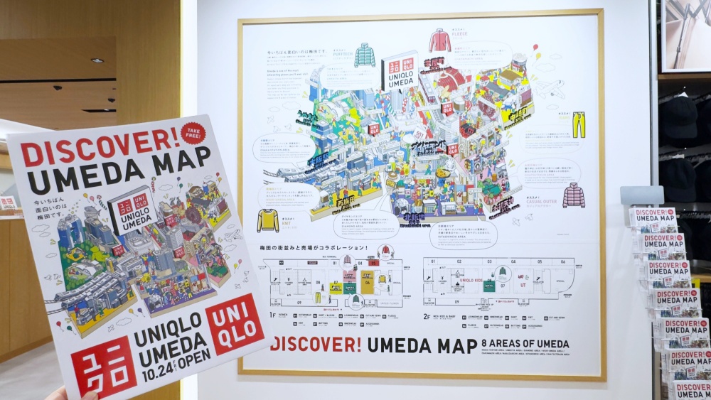 UNIQLO UMEDA 還免費發送雙語(日語、英語)的梅田街區導覽地圖「DISCOVER! UMEDA MAP」,旨在向國內外顧客介紹梅田八大區域的魅力景點、餐廳及最新發展情況。
