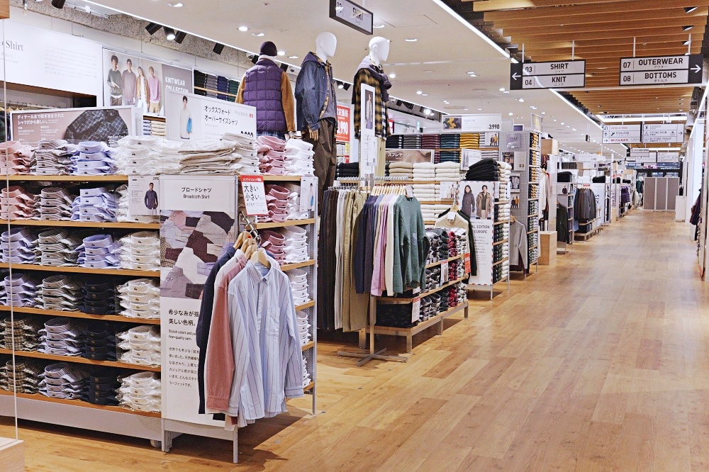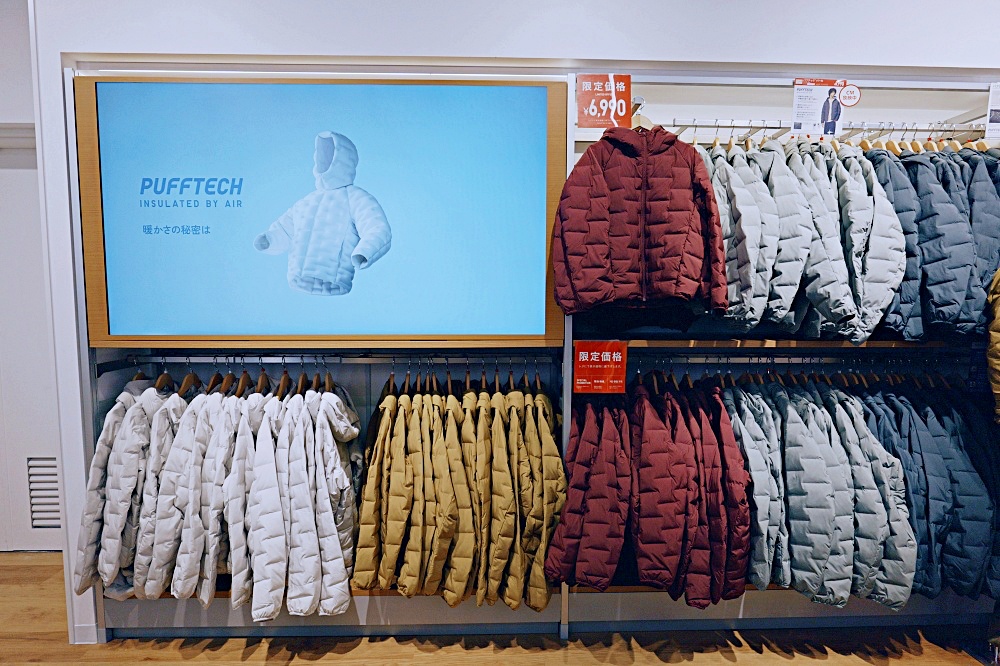 UNIQLO 熱賣主推商品也都會依種類集中放置,讓消費者能快速找到自己所需商品,不需要東奔西跑。