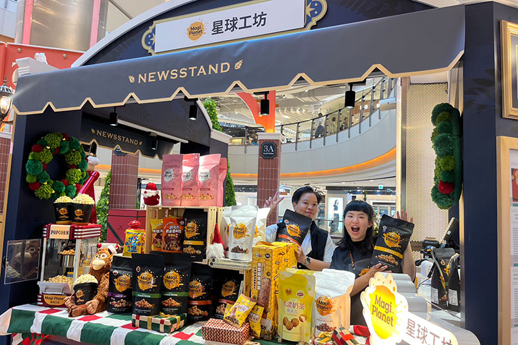 節慶快閃市集有Magi Planet星球工坊、菓風小舖、花甜、花語烘焙工坊、蛋白工坊等超人氣甜點品牌進駐,結合節慶裝置布置將聖誕市集的熱鬧氛圍完美呈現,讓顧客可在此選購禮物、享受美食、拍下歡樂感十足的節慶照片。