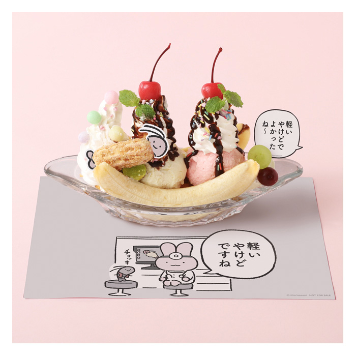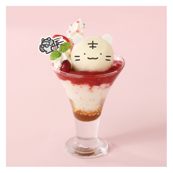 同樣是小白虎再度登場,這次則是化身為聖代上面的冰淇淋,聖代當中還能吃到草莓果醬、牛奶布丁與米菓子等配料。另外還附上了草莓小偷的造型插卡。