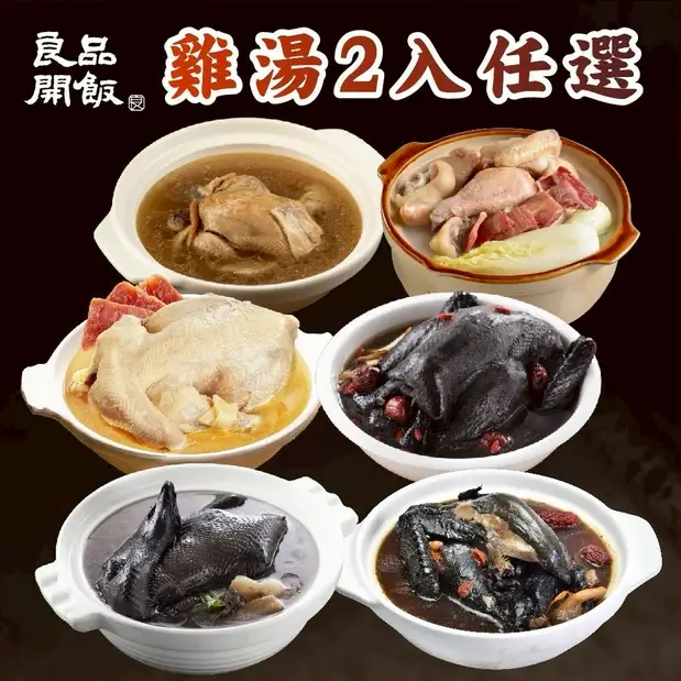 如果你們家偏好在家吃、比較安靜、比較想放鬆,那一鍋熱呼呼的好湯永遠是圍爐的靈魂!良品開飯的雞湯份量扎實、湯頭乾淨,金華火腿雞、人蔘烏骨雞、廣式椰子燉雞湯、黑蒜烏雞、三代同堂富貴雞、春筍奶雞湯,每款都是冬季必備。任選兩入還免運,買起來剛剛好是「家人圍著一鍋,邊吃邊聊」的節奏。