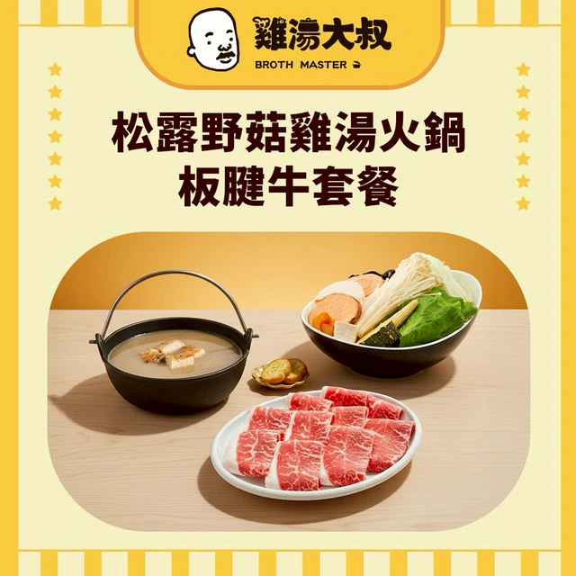2. 歲末圍爐雞湯鍋推薦:雞湯大叔松露野菇雞湯板腱牛套餐好禮即享券