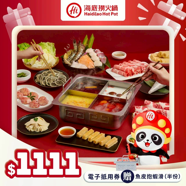 海底撈一直是帶長輩吃飯的「零失誤」選擇!服務穩、湯底不踩雷,想吃辣的、愛喝清湯的、偏好不吃太多油的長輩,全家人都能找到自己的好口味。這張電子抵用券直接給到 1111 元,還加贈魚皮抱蝦滑半份,點餐更彈性、也更划算。而且平日可用,安排提前聚會也很方便。