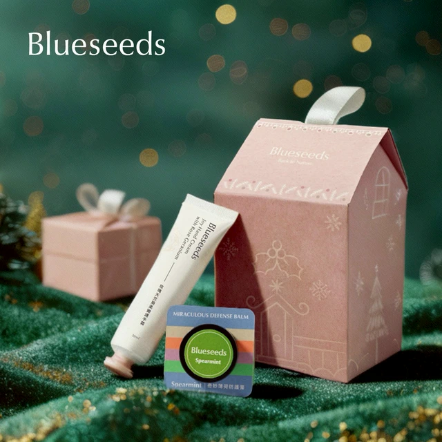 如果是交換禮物場合,這組 Blueseeds 可以說是實用度滿分的那種!精油護手霜搭配精油膏,一盒就能滿足日常舒緩、提神、修護等需求。它的油膏基底選用蜜蠟、乳油木果脂、黃可可脂,吸收之後不黏膩,香氣也不是那種侵略性強的化學味,而是偏自然的草本調。