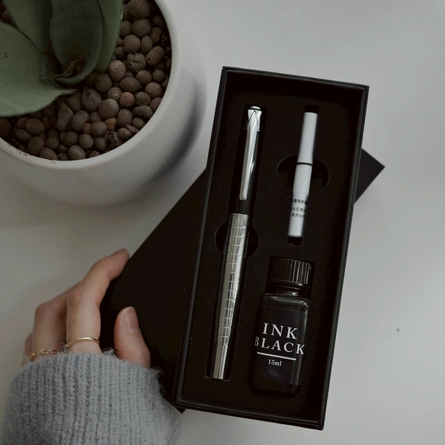 想送一份帶點「儀式感」的禮物,這支客製化鋼筆非常有誠意。金屬筆身沉穩、俐落,旋轉吸墨的機構寫起來有種慢慢來的氣度,一瞬間讓日常筆記也變得講究。可以免費雷雕名字或短句,是完全個人化的心意,而且禮盒、絨布套、紙袋、墨水統統都附好,不需要再額外準備。