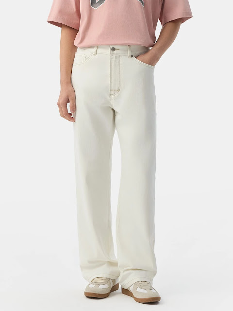 想讓長袖 Polo 衫穿起來更有呼吸感、也更時髦,白色直筒牛仔褲絕對是簡單又有效的下身選擇。它的直筒版型保留了剛剛好的空間感,走起路來不會貼腿,也能延續上身的休閒氛圍;而白色本身帶有乾淨與高級感,無論搭深色 Polo 衫或大地色系外套,都能讓整體更明亮、利落。