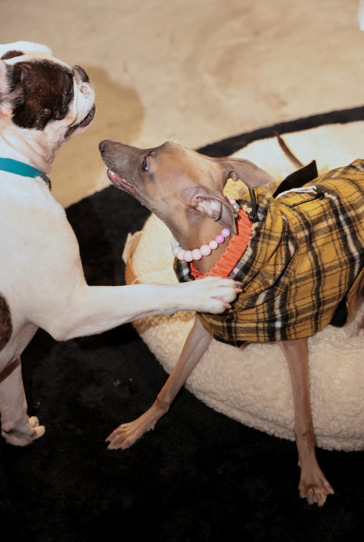安芙利 Anfurri 創辦人 Rita 長期投入居家布藝與毛孩生活設計,深知毛孩與人類同樣需要被細緻照顧,因此以「共享生活質感」為起點,邀來多年好友——時尚設計師 Jamie Chen ,以品牌擅長的布料研究與極簡設計語彙,首度打造了寵物服裝系列。天然原食品牌 OGGI 也從飲食面補足毛孩日常需求,以雞肉、牛肉、蔬菜與山羊奶酪開起「毛孩下午茶」,大家的共識都是:設計的目的不是說服飼主,而是「讓毛孩用身體說喜歡」。