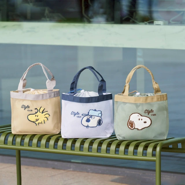 喜歡輕便外出包的會很愛這款。托特包用透氣網布做成,重量很輕,大開口設計可以放便當、飲料、隨身物。有三種角色 (史努比/胡士托/歐拉夫) 可以選擇,每款都呈現出各自的個性。而且這組合還有再一個馬卡龍霧面吸管杯,質感非常好,日常外出使用也很好搭配。