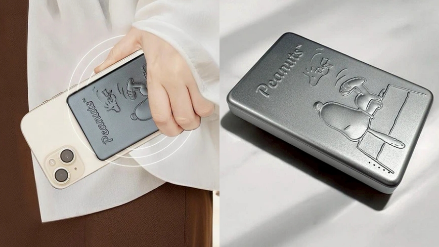 想要實用但又要保留 Snoopy 的細節元素?這款行動電源就很值得入手!金屬浮雕設計質感很好,正面 Snoopy 的立體光澤越看越耐看。1.3cm 超薄厚度,帶出門完全不佔空間,還支援 MagSafe 一吸即充、最高 20W 快充,而且也能同時充兩台,是美觀與實用兼具的行動電源。
