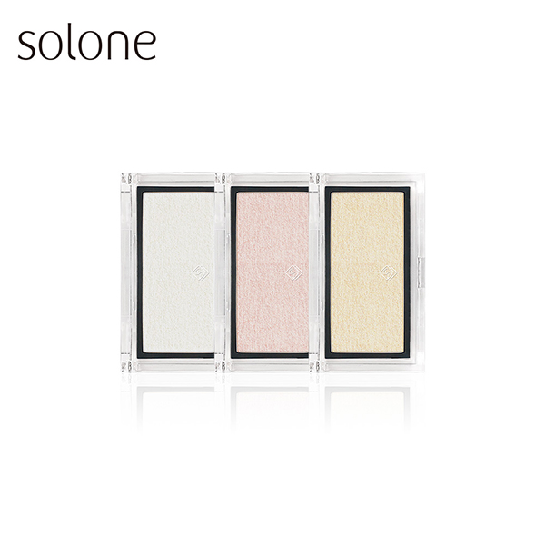Solone這款打亮餅以微爍珍珠光粉體,打造透亮的光感,粉質柔滑細緻,不容易顯毛孔,價格相對親民!使用時輕刷於顴骨、眉骨或微笑肌位置,能夠讓肌膚呈現澎潤明亮。Solone女神光打亮餅的貼膚感與易上手的特性,相當適合初學者或喜歡日常自然光感的人。