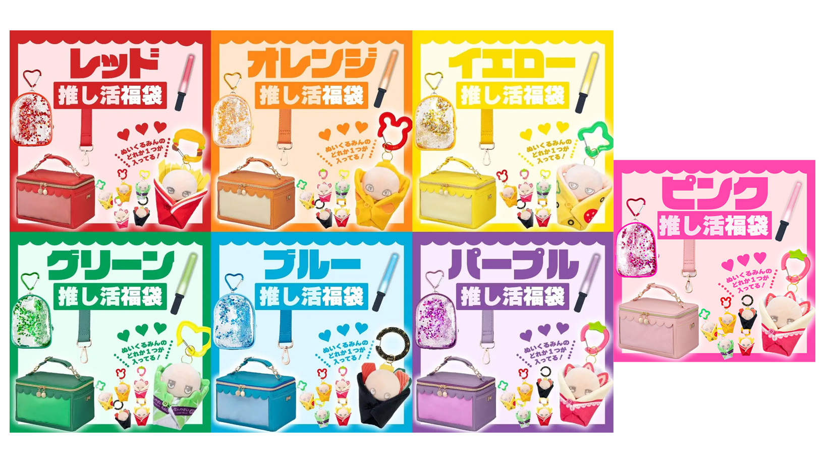你所喜愛的角色/偶像的代表色是什麼顏色呢?專為「推活文化」推出各式各樣雜貨商品的品牌「OZaKKa(オザッカ)」,特別祭出了「紅、橙、黃、綠、藍、紫」以及「粉紅」七種不同顏色的2026推活福袋,每一款福袋都會附上該福袋代表色的化妝包、娃包、背帶,以及隨機一款造型娃衣。