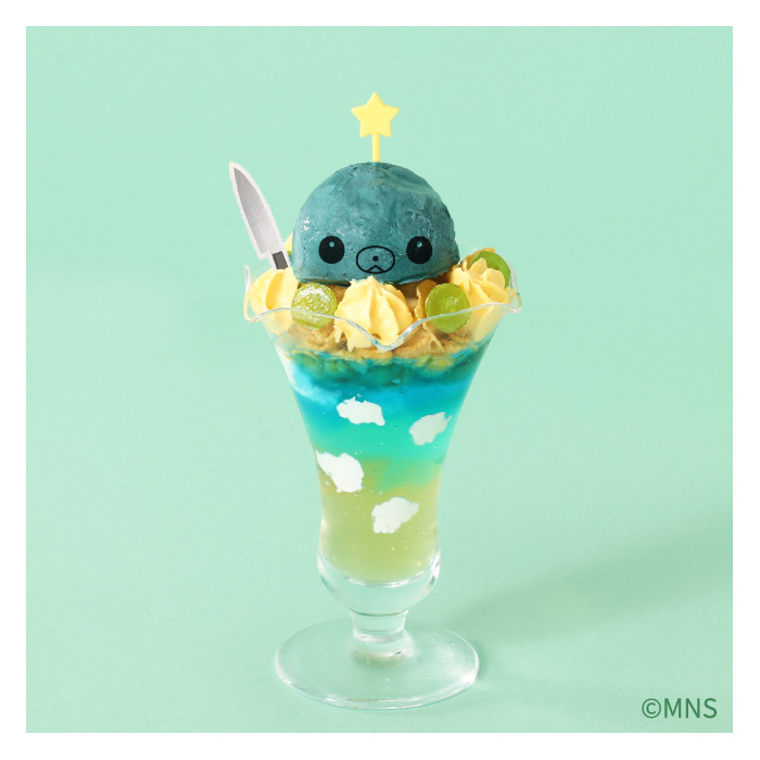 甜點的部分,則有以TAMA為造型的特製聖代,好笑的是,上面還插著TAMA常用的那把刀做裝飾。