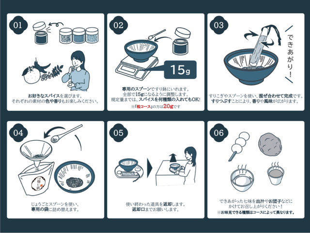 帶著自己親手調配的香氣回家,下次吃飯時,只要輕輕灑上一撮,讓七味粉把旅途的記憶重現在自家的餐桌上吧。
