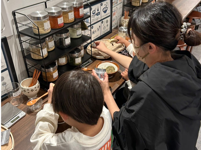 除了七味粉調配體驗外,店內也推出僅限小學生以下參加的「自製香鬆體驗」。