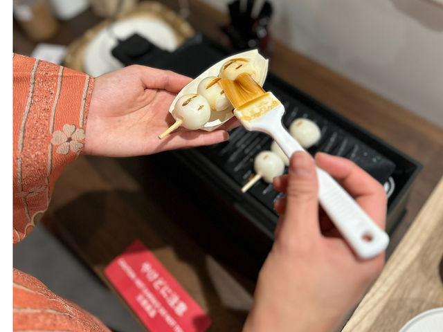 試吃內容最豐富,包含:高湯、御神籤溫泉蛋、味噌田樂、手烤仙貝、糰子