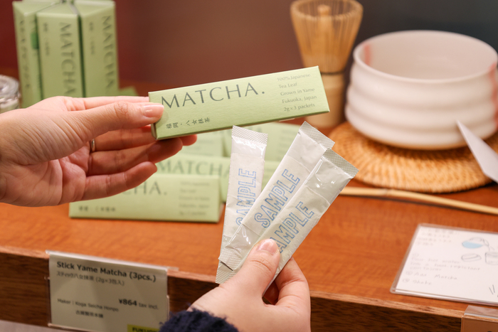 店內大受遊客歡迎的商品莫過於,採用來自日本第一玉露產地——福岡茶鄉「八女市」所種植的「八女抹茶」!而圖中的條狀小包裝更是源自GOOD MARKET KYUSHU收到顧客反應原本的包裝容量太大攜帶不便,進而和廠商共同討論開發出的小份量、適合隨身攜帶的商品。
