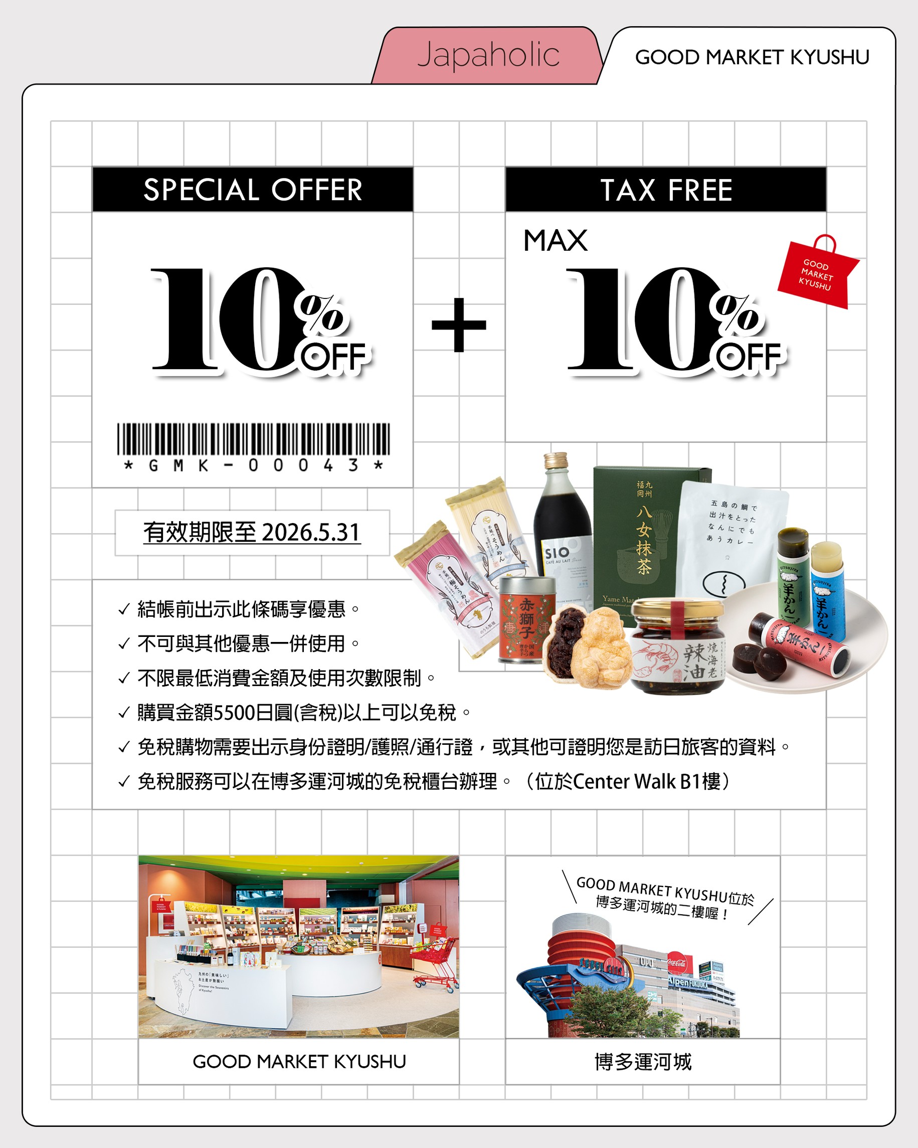 編輯部這次也有幫大家爭取到專屬優惠券!接下來有預計前往福岡的讀者趕快先存下來,到店鋪時記得出示使用唷!