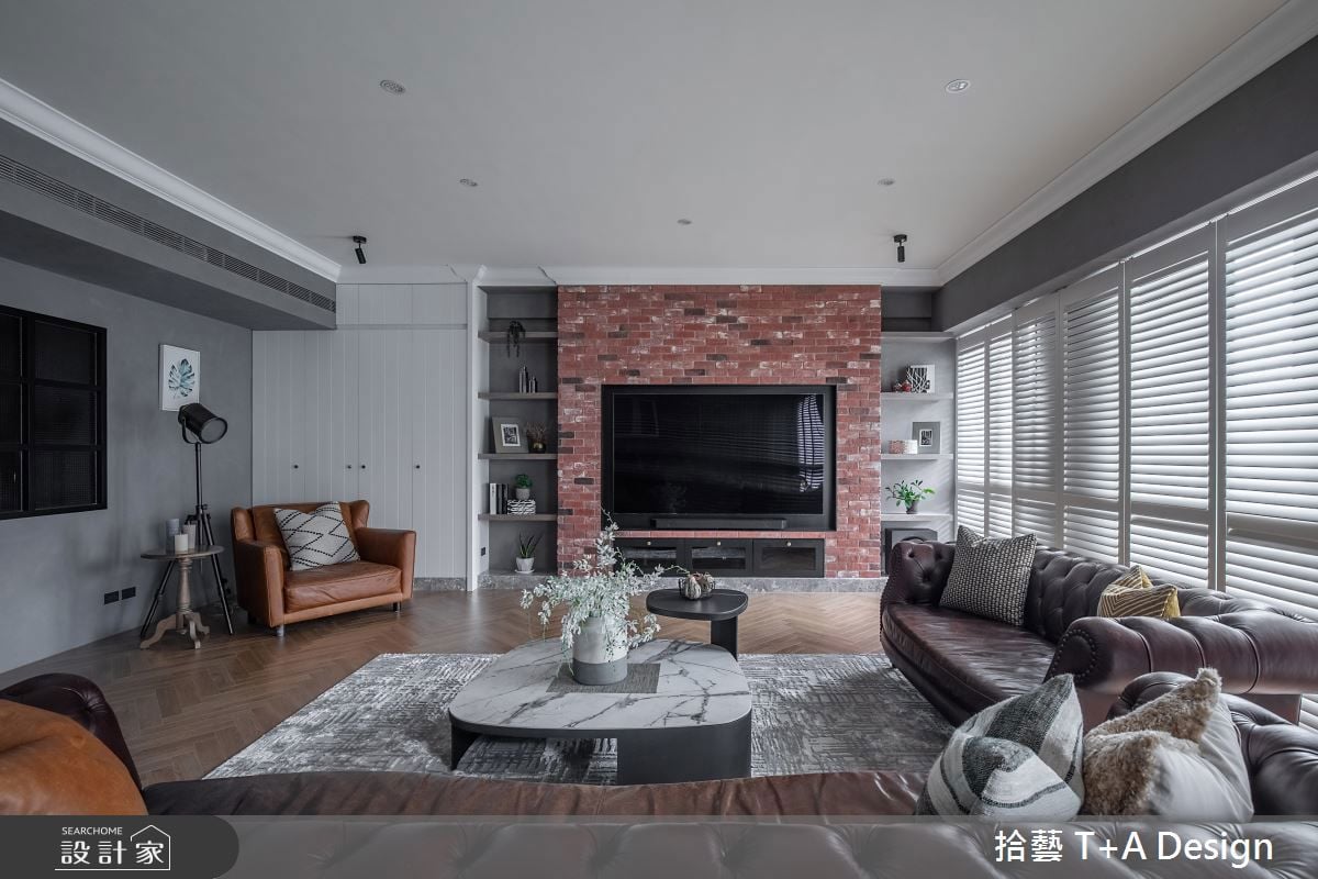 44 坪的宅邸深度致敬了紐約工業風的精隨,空間基調以經典的黑白灰色為骨架,牆面大膽鋪陳手感粗獷的老紅磚,並結合具有樂土紋理的水泥塗料電視牆,奠定了沉穩且富有藝術質感的工業底蘊。設計師巧妙地保留了天花板明管設計,搭配黑色軌道燈的俐落線條,與局部點綴的鐵件元素相互呼應,完美還原了曼哈頓閣樓那份不羈且優雅的生活姿態。舊有的皮革沙發與小書櫃在軌道燈的暖色映射下,與現代感十足的黑鏡設計毫無違和地並存;陽光透過百葉窗灑落在充滿歷史氣息的老紅磚牆,入夜後壁燈亮起照映著水泥塗料的斑駁肌理,構築出充滿美式復古情懷的摩登居所。