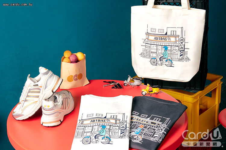 adidas全新城市插畫系列巧妙融合多樣的在地文化元素,把街頭最熟悉的路邊招牌、機車騎士通通化身為Q版插畫,在服裝正面點綴台北獨有TAIPEI字樣,呈現具識別度的穿搭亮點。還有以「地瓜球」為靈感的SPIRITAIN 2000 GORE-TEX鞋款,鞋後跟印有金黃酥脆的雙色地瓜球圖樣,下方以銀色弧線描繪出攤位上的鍋具,搭載GORE-TEX防水科技,為多變潮濕的天氣環境提供優異的防護表現。