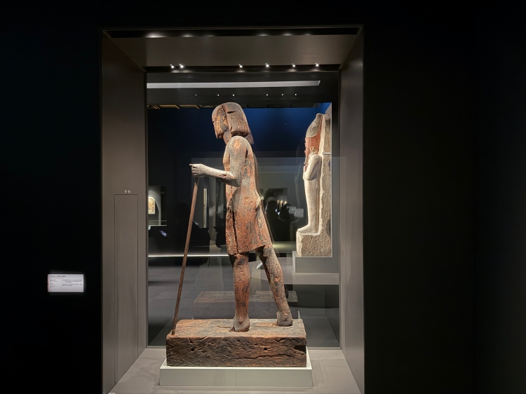 奇美博物館的《埃及之王:法老》展場許多館藏文物都是西元前1千多年甚至兩千五百年前的遺跡,這些珠寶護身符、墓室祭堂石牆、兩尺高的巨型石雕,經過一年籌備,繞過地球半圈來到台灣觀眾眼前,據說佈展難度很高,大型機械手臂進進出出花了兩個禮拜才把280件展品全部就定位,又因為策展方法將敘事圍繞在法老王權的軸心,比較看不到「演變」但更深入法老這個角色。