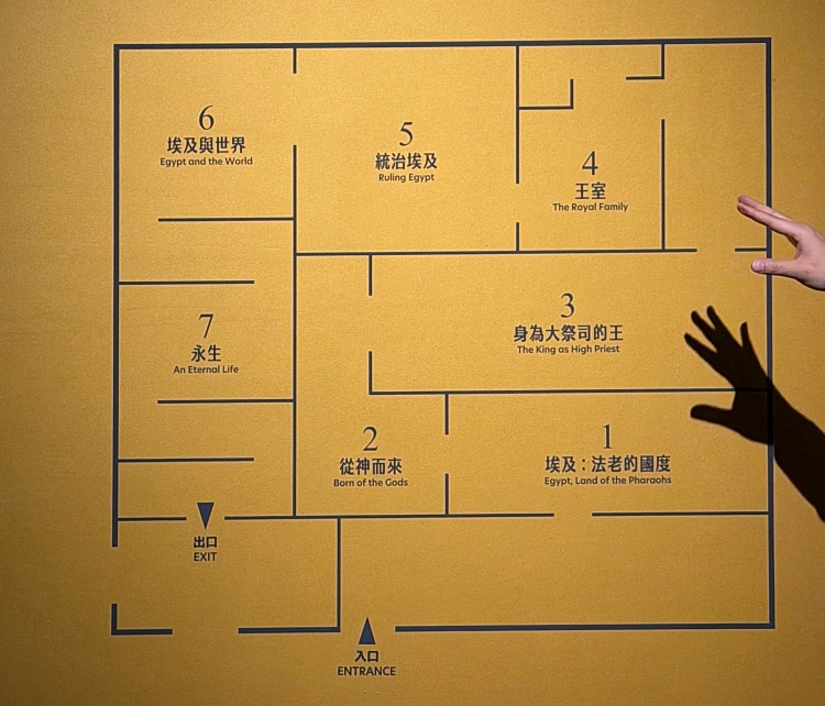 展覽本身已規劃單向而清楚的動線,建議依序完整走完7區,不需跳看。若時間有限,優先聚焦第2區「從神而來」、第4區「王室+互動區」以及本展最推薦的第7區「永生」,這三區最能快速理解法老的神權、日常與生死觀,也最具視覺與記憶點。